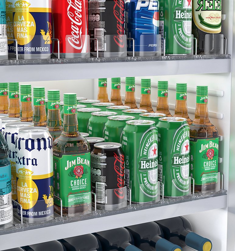 Showcase your beverages in a tidy, premium way. Front-faced rows make it easy for customers to browse, compare and choose — great for in-store merchandising and online photography.